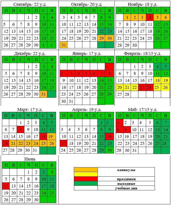 Учебные и выходные дни в 2022 — 2023 учебном году