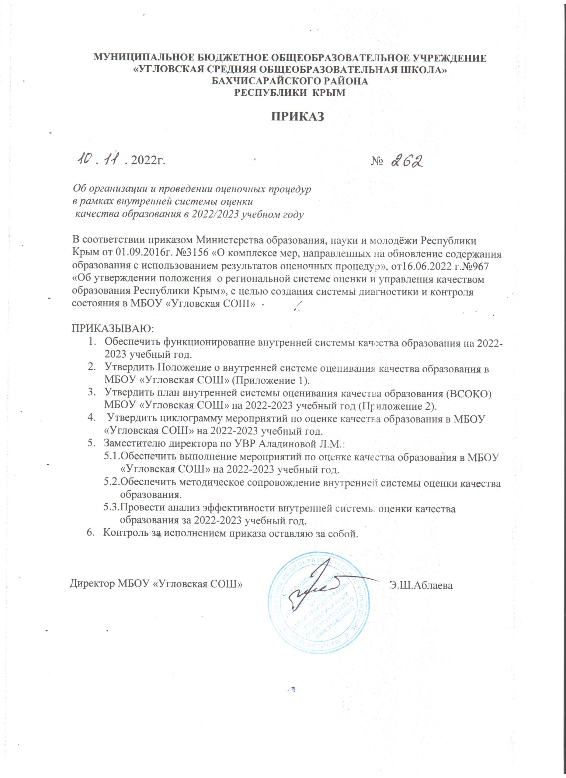 График проведения оценочных процедур МБОУ «Угловская СОШ» в 2022-2023 уч. г.